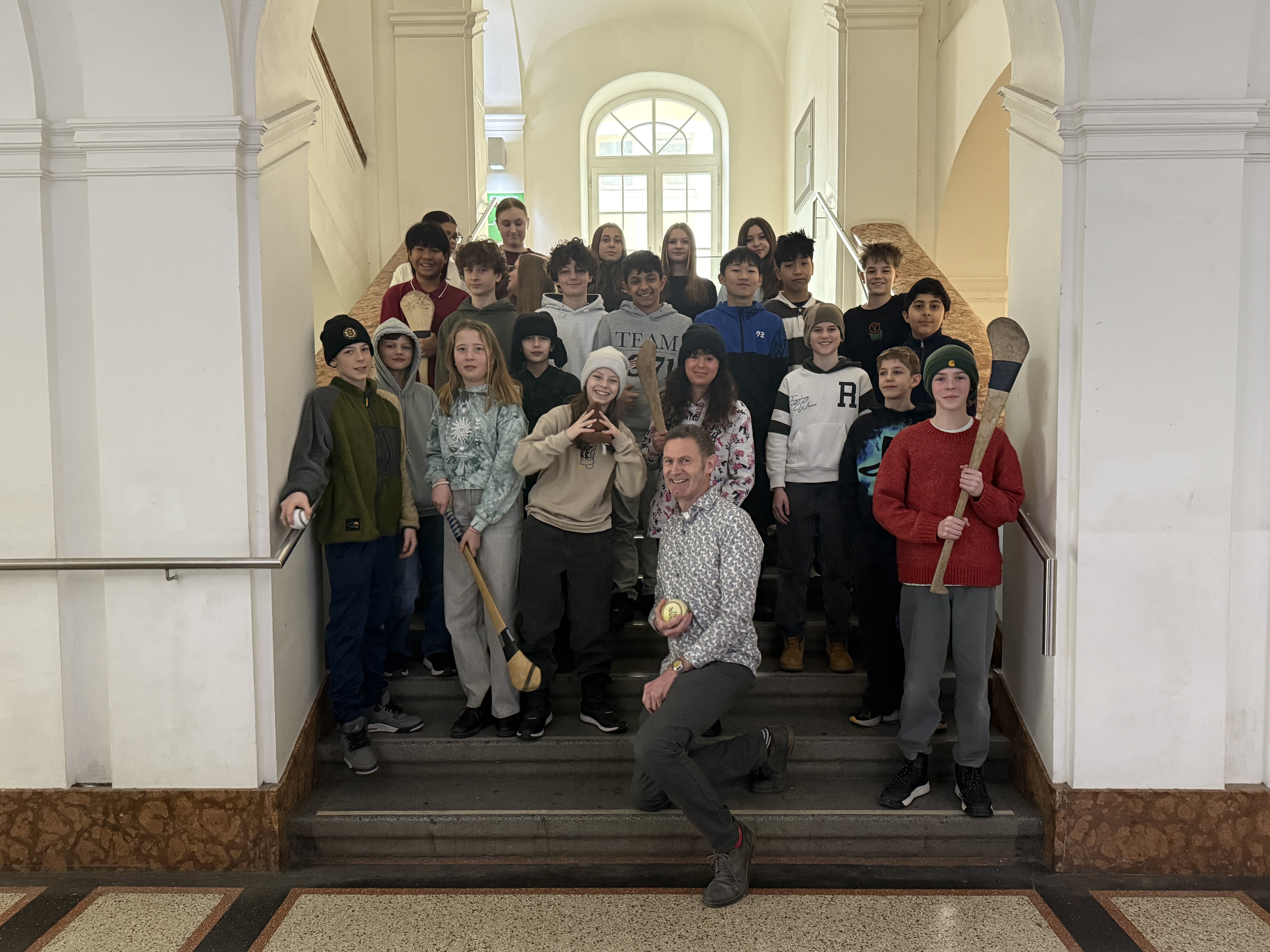 For about 1,5 hours he talked about a great variety of different facts. Tommy had also brought some hurleys. Hurleys are used for a specific sport called ‚camogie‘. We were given the opportunity to mess about with them, hold them, and run around to see how it feels to carry one throughout an entire game.