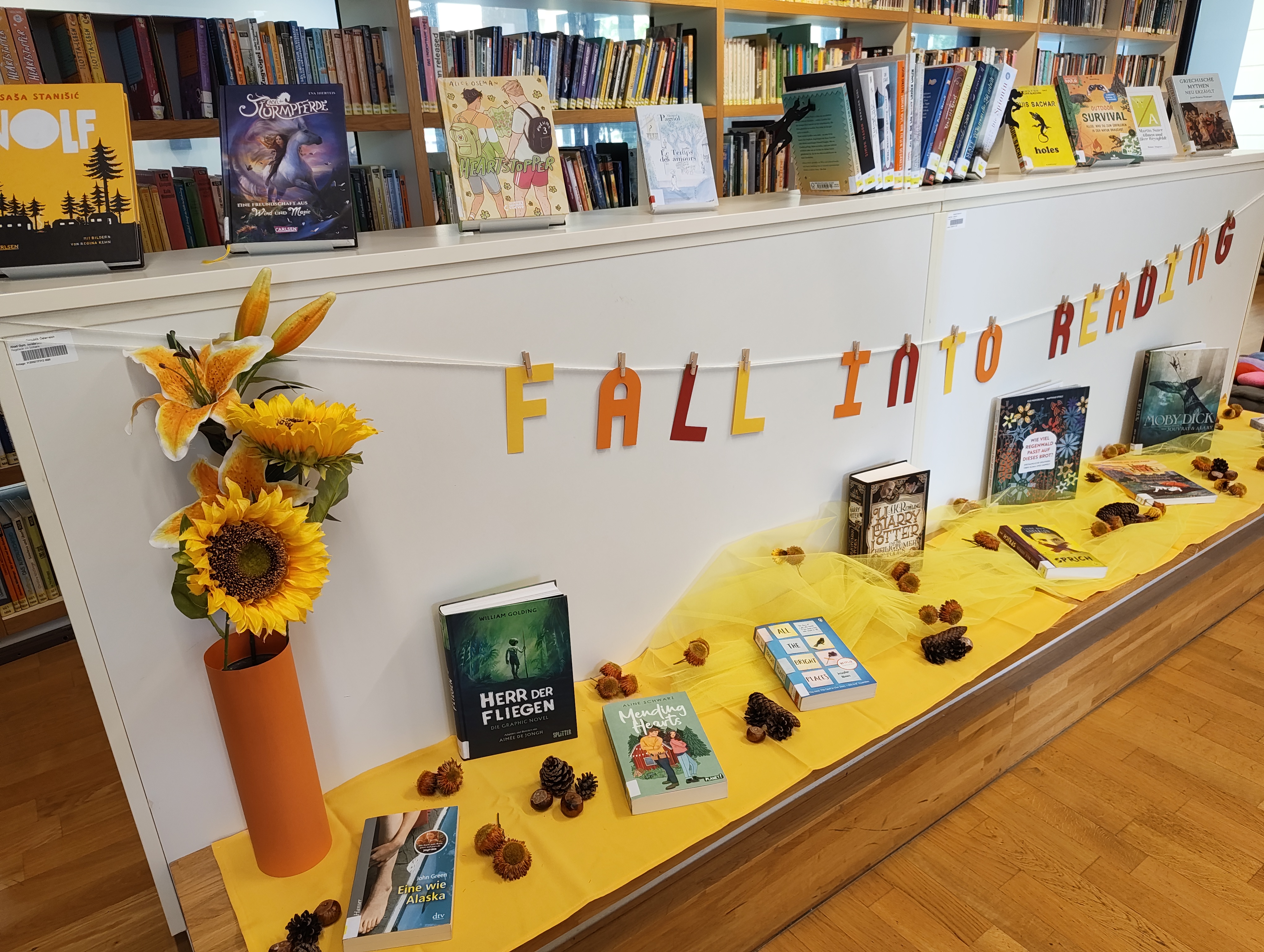Herbst ist Lesezeit! Und so wartet auch in diesem Schuljahr die Schulbibliothek wieder mit vielen spannenden Büchern und Themen auf euch. Wir sind jeden Tag für euch da, gern könnt ihr zum Lesen, Lernen, Stöbern und Staunen zu uns kommen. Also: Fall into reading!
