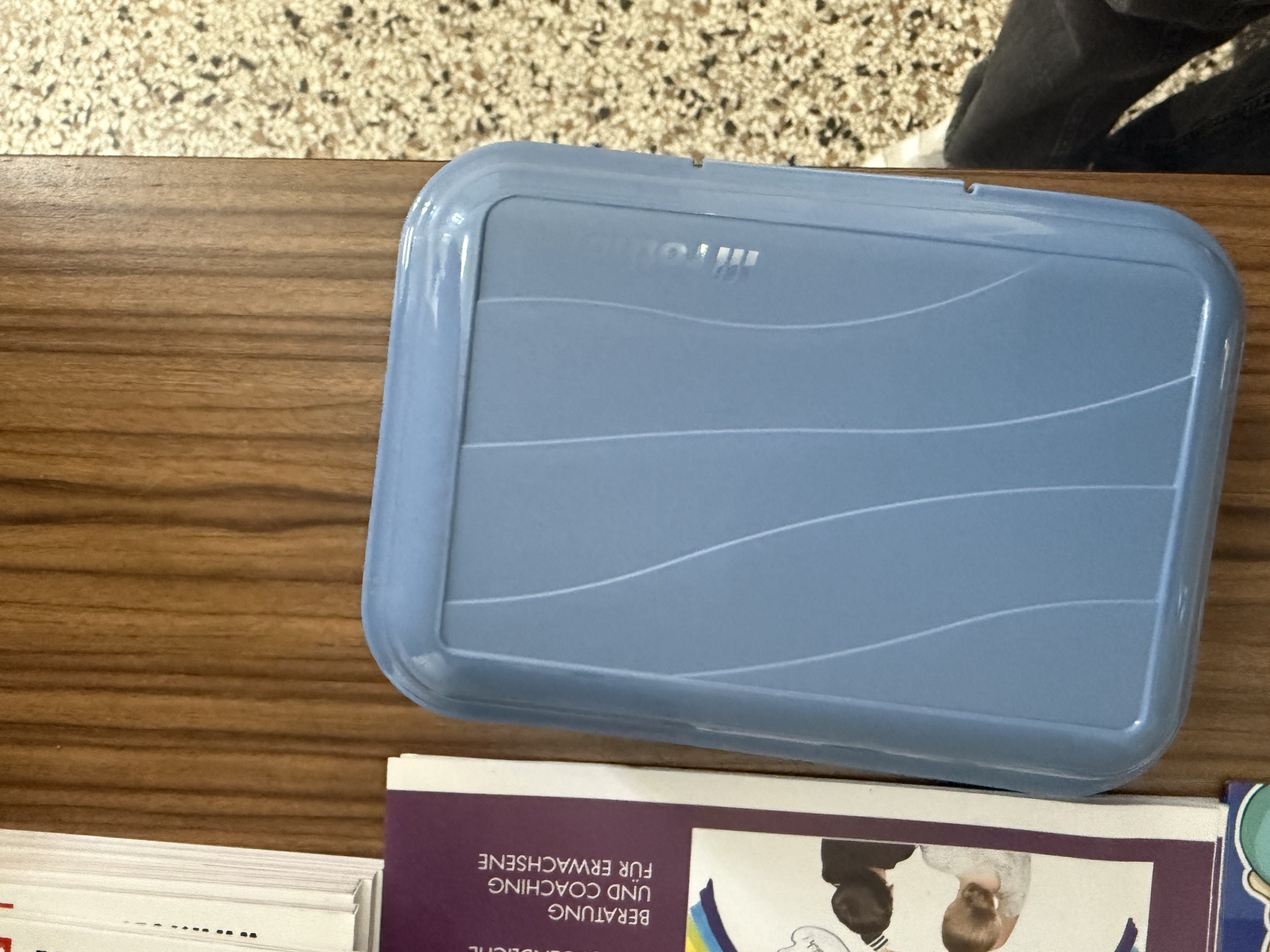 Vergessene Brotdosen und Flaschen landen oft hier – sauber aufbewahrt und abholbereit. Forgotten lunch boxes and bottles often end up here – cleanly stored and ready to be picked up.